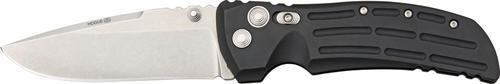 Large Tactical Drop Point - 5" closed button lock. 4" drop point blade. Black aluminum handles. Textured front handle. Back handle is smooth. Reversible stainless pocket clip.