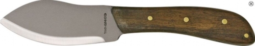 Condor Nessmuk Knife. 8 3/4" overall. 4 1/8" 1075 high carbon steel blade with bead blast finish. Full tang. Walnut handle. Black leather belt sheath.