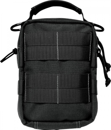 Maxpedition FR-1 Pouch. Measures approximately 7" x 5" x 3" with full zipper opening. Can be used as a medical pouch. Front and back halves have layered pockets topped with a wide array of elastic loops. The full zipper "clamshell" can be fine tuned to various angles using a paracord adjuster. Features Torch-Lair in front with bungee cord compression. Color: Black Maxpedition Hard Use Gear is constructed of 1000-Denier water and abrasion resistant light-weight ballistic nylon fabric treated with Teflon fabric protector for grime resistance and easy maintenance. Uses high tensile strength composite nylon thread (stronger than ordinary industry standard nylon thread). #AS-100 high grade closed-cell foam padding material for superior shock protection. High tensile strength nylon webbing. #10 high strength zippers and zipper tracks. UTX-Duraflex nylon buckles for low sound closures. All items shown with the Maxpedition products are for display purposes only. They are not included with the product.