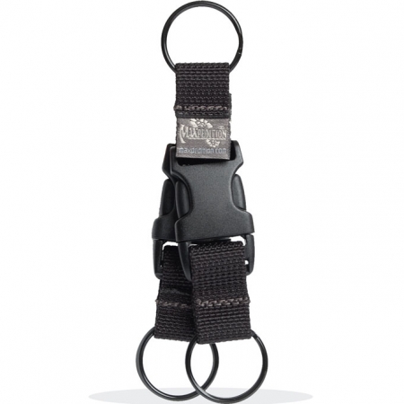 Maxpedition Tritium Keyring. Three split rings coupled with two side release buckles. Heavy duty nylon webbing throughout. Great way to organize and deploy keys and small keychain tools. Color: Black.
