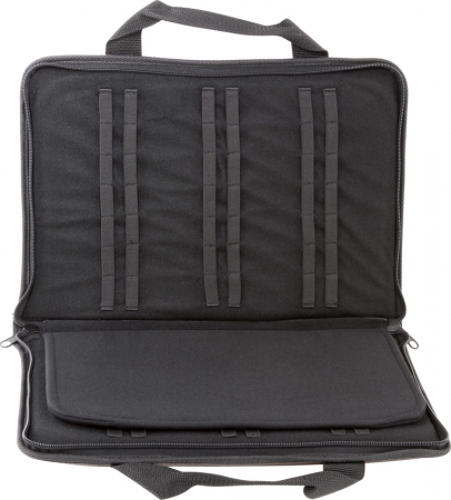 Case Medium Carrying Case. Brown leather exterior with Case logo imprint and heavy black nylon handle. 100% cotton lining with thick foam padding and center separator to protect knives on each side. Perfect for storage, travel or display. Measures 22" x 15". Holds 44 knives.