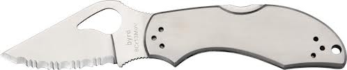 Byrd Robin 2. 3 1/4" closed lockback. 2 1/2" serrated 8Cr13MoV stainless blade with thumb slot. Stainless handles. Four-way reversible stainless pocket clip.