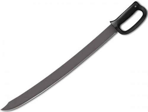 Cold Steel Cutlass Machete. 30" overall. 24" 1055 carbon steel blade with black baked on anti-rust matte finish. Black polypropylene handle. Black Cor-Ex belt sheath. Hang packaged.