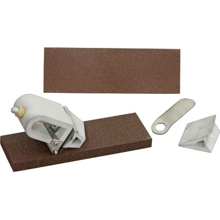 KME Self-Aligning Broadhead and Replacement Blade Sharpener - Standard Kit. Includes (1) KME Aluminum-Oxide coarse ceramic stone, (1) KME Aluminum-Oxide medium ceramic stone, (1) KME Self-Aligning Broadhead and Replacement Blade Sharpener, (1) 3 oz. bottle honing oil and instruction manual. Black plastic case stores all items. Bulk packed.