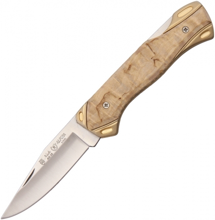 4 3/4" overall lockback. AN-58 steel blade. Curly birch handles with chrome accents. Fileworked back spring.