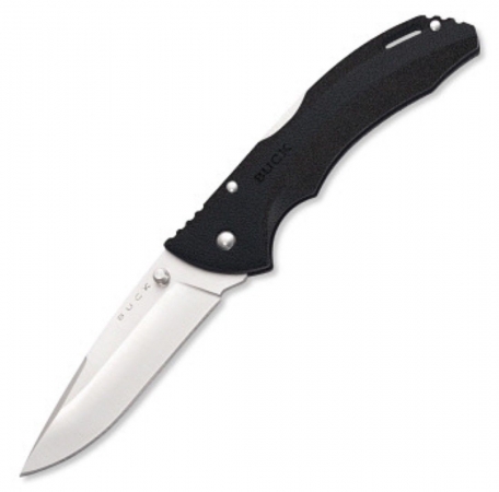 Buck Bantam BLW. 4 3/8" closed lockback. Stainless blade with dual thumb studs. Black thermoplastic handles with lanyard hole.