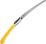 Silky BIG BOY 2000 Folding Saw. 16" closed. 14 3/8" rust-resistant, hard chrome-plated, taper-ground, low angle, curved Japanese steel blade with impulse-hardened, non-set X-Large MIRAI-ME teeth. The blade has two open locking positions for in line or flush cutting. Aluminum handles with yellow Gom non-slip rubberized overlay offers a sure grip, even for the most challenging projects. Features a spring loaded thumb lever lock. Lanyard hole. Hang packed. Ideal for forestry, arborist, pruning, trimming, fruit trees and more!
