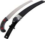 Silky ZüBAT Pistol Grip Saw. 17 1/2" overall. 12 3/8" rust-resistant, hard chrome-plated, taper-ground curved Japanese steel blade with impulse-hardened, non-set large MIRAI-ME teeth. Aluminum pistol-grip handle with black Gom non-slip rubberized overlay offers a sure grip, even for the most challenging projects. Lanyard hole. Black grooved polypropylene belt sheath. Bulk packed. Ideal for pruning, arborist and more!