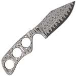 Le Bowie Damascus - 5 7/8" overall. 2 3/4" bowie blade with thumb ridge. One piece Damascus steel construction with integrated finger guard. Handle features drilled hole design. Black molded Kydex neck sheath with black beaded ballchain. Bulk packed.
