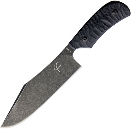 10.25" overall. 6" black stonewash finish 440C stainless clip point blade. Black sculpted G10 handle. Full tang. Black Kydex belt sheath. Boxed.