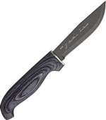 Skinner - 9" overall. 4 1/4" stainless blade with black Teflon finish. Black laminated wood handles.