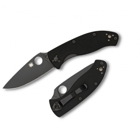 Being tenacious means you are persistent and cohesive. It's being tough and tireless in achieving your best performance; all worthy descriptive words for a hard-use knife. The mid-sized Tenacious has a black G-10 laminate handle, ergonomically milled with prolonged fatigue-free cutting in mind. Skeletonized steel liners tucked inside the handle, increase the handle's rigidity and strength without non-functional weight or thickness. The 8Cr13MoV stainless blade is coated in a non-reflective black coating and ground-flat from spine to cutting-edge for non-stop cutting. The blade's shape, coupled with an oversized Spyderco Round Hole, position the hand for instant and confident blade opening. Sharp from tip to hilt, the Tenacious offers the most cutting edge possible for the blade's length. A black 4-way pocket clip lets the folder be set in a variety of carry and draw positions: Tip-up/tip-down left-hand/right-hand. Walker Linerlock (with jimped liner). Screw together construction, screws and pivots are also blackened. �length overall: 7.76" (197 mm)