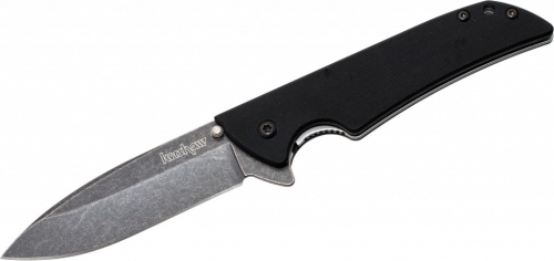Skyline Linerlock - 4 1/4" closed. 3 1/4" black stonewash finish Sandvik 14C28N stainless drop point blade with dual thumb studs and extended tang. Textured black G-10 handles with integral guard and lanyard hole. Reversible satin finish stainless pocket clip.
