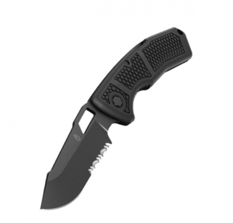 The Order is an American-made tactical knife designed to be used by soldiers and police officers for cutting, prying, digging, and fighting. It features a 420HC blade with a black ceramic coating which protects against corrosion and minimizes reflective surfaces. The handles are made of glass-filled nylon and over-molded with a rubberized diamond texture, providing a secure grip in all weather conditions. The thumb hole in the Order's blade allows for easy one-handed opening and the lock back mechanism provides structural integrity for heavy-duty work. The Order Folding Clip Knife is proudly made in Portland, OR. Gerber limited lifetime warranty.