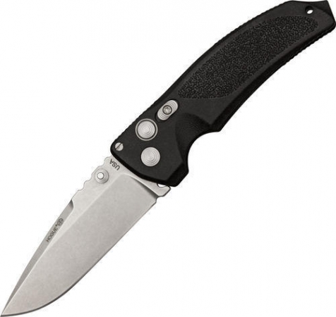 EX-03 Button Lock - Extreme Series. 4 5/8" closed. 3 1/2" 154CM stainless drop point blade with dual thumb studs and tumble finish. Black glass filled polymer handles. Lanyard hole. Integrated glass breaker pommel. Reversible stainless pocket clip. Elishewitz design.