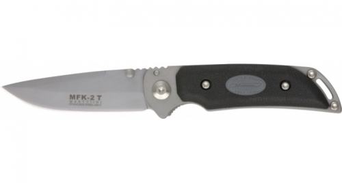 MFK-1T - 3 7/8" closed. Each linerlock comes with a matte finish 420 stainless blade with dual thumb studs. Matte finish stainless frame with FRN/TPE injection molded handle scales. Stainless pocket clip. Lanyard slot. Attractive gift tin.
