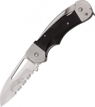 Generation 2 Captain Pro - Professional Series. 4 5/8" closed linerlock. Pro Marine stainless partially serrated sailor's sheepsfoot blade with shackle slot and 2 1/2" locking marlin spike. Shackle acts as a lock-release mechanism. Black G-10 resin handles with finger choil and stainless bolsters. Lanyard ring. Stainless pocket clip with slot cutout deisgn. Black nylon belt sheath. Hang packaged.