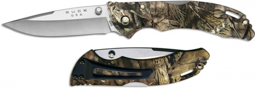 Buck's sleek series of lightweight mid-lockbacks features a host of convenient, easy to use enhancements. From the tip of the blade, through the wide sloping edge, these knives are ready to meet the ever expanding everyday demands. The lightweight ETP handle offers a firm, well-balanced grip. Thumb studs on both sides of the blade provide easy, one hand opening, while the mid-lockback location makes for a smooth closing.