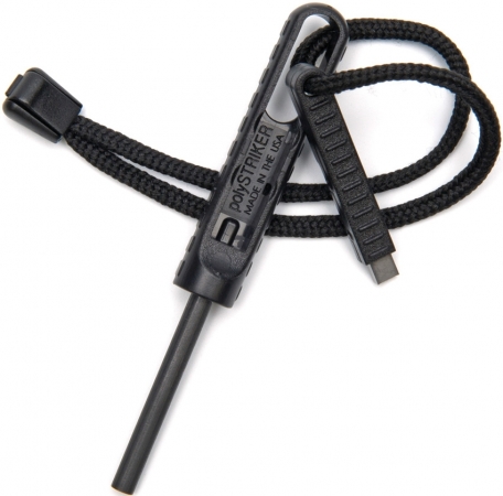 4 1/4" overall. Waterproof fire-starting tool works by using a combination of a ferrocerium rod and an ultra-sharp tungsten carbide striker. Durable, lightweight polymer design with cord lanyard. Similar to age-old flint and steel, it is superior because it doesn't just produce a spark: it creates molten globulthat burn at over 5500° F. Produces up to 1500 fire-starting strikes. Weighs under 0.5 oz. Hang packaged. Color: Black.