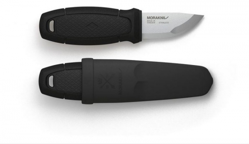 The blade is 2 mm thick and 56 mm long (or in this case short). It is made of high-quality Swedish stainless steel (12C27) that is treated to the highest quality in Morakniv's factory. Add to this the convenient size of the blade, suitable for many outdoor tasks encountered on the hike as well as the camping or hunting trip. A secure grip of two different polymers and a click locks makes it safe to handle. Perfect for both new and more experienced explorers.