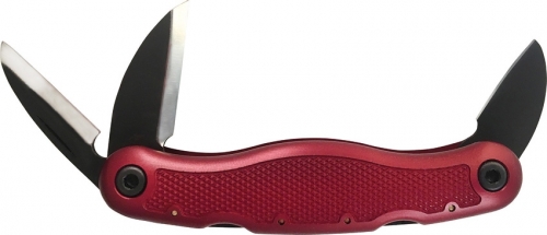 Our Spoon Carvin' Jack makes it easy and convenient to handcraft spoons from every kind of wood stock. It has both a shallow and deep hook knife, designed to form the hollows of spoons and bowls. It also features a straight blade for shaping and carving fine details into the design. Like all the knives in our Carvin' Jack Collection series, our Spoon Carvin' Jack fits neatly in your pocket. The handle is made of rugged aerospace aluminum with a deep crosshatching to keep the knife from slipping while carving. Shallow Hook Knife Radius = 5" Deep Hook Knife Radius = 0.75"