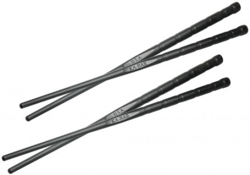 The KA-BAR Chopsticks are sold as a four pack, providing two sets of American-made, dishwasher safe chopsticks. They are made from Food and Water Safe Grilamid and measure 9.5" overall. The chopsticks are each marked "KA-BAR" and "USA" and weigh in at a user-friendly 0.6 ounces per chopstick.