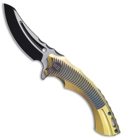 This Sea Monster model has a gold anodized handle and a two-tone black/satin blade.