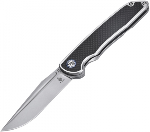 The Kizer Matanzas is a slim EDC flipper knife designed by Nick Swan. This model sports a practical drop point blade made from CPM-S35VN stainless steel with a fuller groove and stonewashed finish. Its titanium frame lock handle is outfitted with a carbon fiber inlay and blue anodized titanium pivot collars. A secure titanium pocket clip and ultra thin profile allows comfortable daily carry.