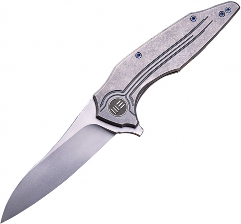 The Ulrich Hennicke designed Bullit flipper knife from WE Knife Co. is built with flowing ergonomic lines for comfortable everyday use. Its tumbled titanium handle is paired with a sleek, hand-finished blade to create a ruggedly sophisticated EDC folder. The Bullit comes outfitted with blue anodized hardware and a unique clip for reduced pocket wear.