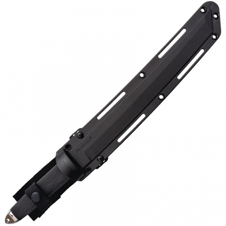 There isn’t a person working in the knife industry today that knows more about the Tanto than Cold Steel does. It was, after all, Cold Steel who invented and popularized this knife style in the early 1980’s. They have spent millions of dollars persuading the public, both through advertising and live or videotaped demonstrations, of the Tanto’s many advantages. They have been producing Tanto’s for more than 30 years now, and there is still no factory or custom knifemaker around making a Tanto that can approach the cutting, slashing or piercing power of one that is manufactured by Cold Steel. All of the Tantos feature a deep lustrous satin finish on the hollow ground blade bevels and a contrasting line grain finish on the blade flats. This technique highlights Cold Steel's state of the art grinding methods and emphasizes the Tanto's unique appearance. In addition, the Tanto's come with their famous flattened oval Kraton handle. The oval shape provides a solid grip and resists rolling or twisting in the hand under hard use, the kind that, over time, would destroy a lesser knife. The use of Kraton in knife handles is another Cold Steel innovation. Kraton is an unparalleled space age material that won't crack or rot and is immune to the ravages of bad weather. The tapered, solid steel pommel is another important Tanto feature that should not be ignored. Lynn Thompson designed it to concentrate the full force of a crushing blow in a small area so that even a moderately powerful blow can be remarkably effective in disarming or otherwise incapacitating an attacker. The Tanto series knives in San Mai all come with a thick, high-quality Secure-Ex sheath that is sure to give years of hard service and keep your Tanto at your side, ready for action.