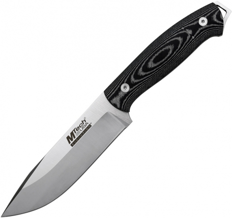 Evolution Fixed Blade. 10.5" overall. 5.5" satin finish 8Cr13MoV stainless drop point blade. Black canvas micarta handle. Full, extended tang. Glass breaker. Lanyard hole. Black nylon MOLLE compatible belt sheath. Boxed.