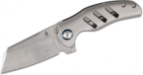 The Ki3488D1 Mini c01c folding knife by Kizer Cutlery is a collaborative project between Kizer and Sheepdog Knives custom knifemaker Chris Conaway. It's a production version of his awesome custom design, manufactured with superior quality and premium features. It's an ideal sized EDC folder that gives you the beefiness of a Sheepdog Knife in a more compact and competitively priced package. The 2.64" sheepsfoot blade is made from Vinland Damasteel with a wide cleaver-style shape perfect for a variety of utility tasks. The bearing pivot system allows for smooth blade opening, as with all Kizer knives. The full titanium handle is a wonder of ergonomics, it really contours to each and every curve of the hand with milled slots for looks and weight reduction. It features a custom pivot and pivot collar, a lockbar overtravel prevention mechanism, replaceable steel insert, and is an excellent knife built with a quality anyone can appreciate. Limited Edition of only 250 pieces.