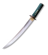 The classic Japanese battle sword in all its incarnations has been celebrated for centuries, not only for its elegant lines and simple beauty, but also for the technique and skill that went into its construction. Most swords offered today are interpretive copies of antiquities from feudal Japan. They were made for warrior’s of small stature who seldom rose above five and a half feet. As skillfully designed as these swords are, they may not be perfectly suited for the twenty first century warrior, who benefited from contemporary advances in childhood nutrition and healthcare and grew up to be a substantially taller, stronger, and more athletic version of his historical counterpart. As a way of compensating for this size disparity, Cold Steel has created the Dragonfly Series. These swords feature thicker, wider and heavier blades, which mirror our Imperial Series in respect to heat treatment, polish, quality of furnishings, and attention to detail, but with a few new departures. Most noticeable are the distinctive teal-green silk cord-wrap and black samé (ray skin) used on the handles and the black iron furniture that bears the dragonfly motif. Also, the polished blades are more strongly curved than our Imperial blades and terminate in a long “iris leaf” point for maximum cutting and slashing potential. Additionally, these swords come with two protective bags. There is a BLUE TRAVEL BAG and an intricately decorative display bag that’s made from the finest heavy silk metallic brocade. Specifications: