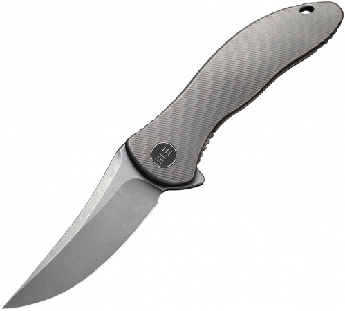 4" (10.16cm) closed. 3" (7.62cm) stonewash finish CPM-20CV stainless trailing point blade. Gray titanium handle. Extended tang. Lanyard hole. Pocket clip. Black nylon zippered storage case. Boxed.