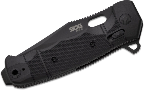 With the XR locking mechanism, the SEAL XR brings an aggressive profile and silky smooth opening to this EDC offering. The 3.9" clip point blade deploys quickly and easily on ball bearings, and you have both a thumb hole and flipper tab as opening options. To assist both the opening and the handling of the knife, there are multiple sets of jimping on both the spine of the blade and on the handle. The handles are made from glass reinforced nylon and have a "persuader" tool on the base. The knife comes with a reversible pocket clip and due to the GRN handles is lightweight and easy to carry.