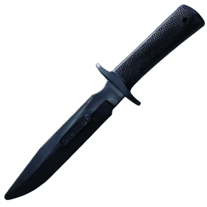 Rubber training version of the Military Classic. The Santoprene rubber blades are soft enough to prevent the likelihood of most bodily injury. They do however, have a level of firmness that might cause injury to the face or the eyes, so it is recommended that appropriate eye protection or a fencing mask is utilized at all times when using a Cold Steel® rubber training knife.