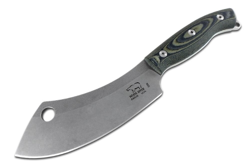 White River's new Camp Cleaver is a versatile camp and hunting tool. Built for both cutting and chopping, it is also an excellent skinning blade. The Camp Cleaver features an easy to manipulate ergonomic handle, a unique modified cleaver blade shape, and a convenient hang hole. Comes with a leather sheath.
