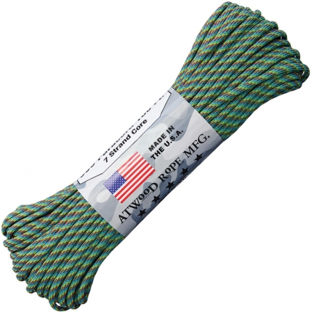 550 cord. 7 strand core. Color: Technicolor (light blue, green, red, yellow). 100 ft.