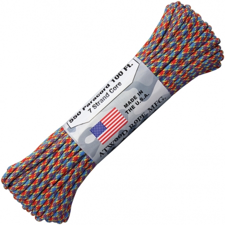 550 cord. 7 strand core. Color: Man of Steel (red, yellow, blue). 100 ft. Bulk packed.