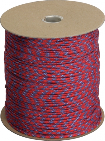 (Red, blue and white). 1000ft. length. 7 strand. Rated for 550lbs. 1,000 ft. spools may have splices. Color may vary due to the dye lots.
