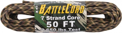 BattleCord is an ultra-tough rope forged from the concepts and construction of one of the greatest ropes ever made--paracord. This rope has 7 inner strands of true static core, each with a 350 lb tensile strength that can be pulled out for additional cordage when needed. The design offers very low stretch allowing you to secure your camp and property with confidence and reliability. Whether you're on the battlefield or on the trail, BattleCord will perform in some of the toughest conditions on earth.