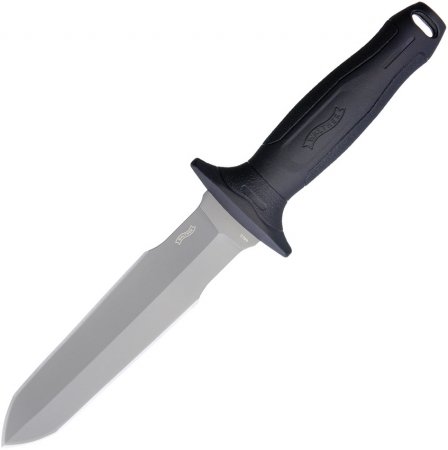 11.75" overall. 6.5" gray finish double edge 440C stainless blade. Black nylon handle. Lanyard hole. Black nylon belt sheath. Boxed.