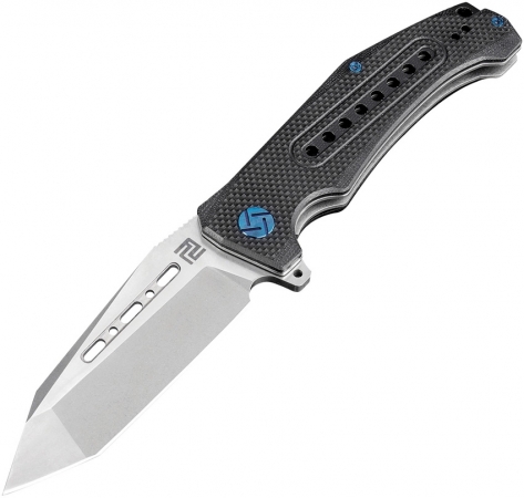 5" closed. 4" stonewash finish D2 tool steel tanto blade. Black textured G10 handle. Extended tang. Lanyard hole. Pocket clip. Boxed.