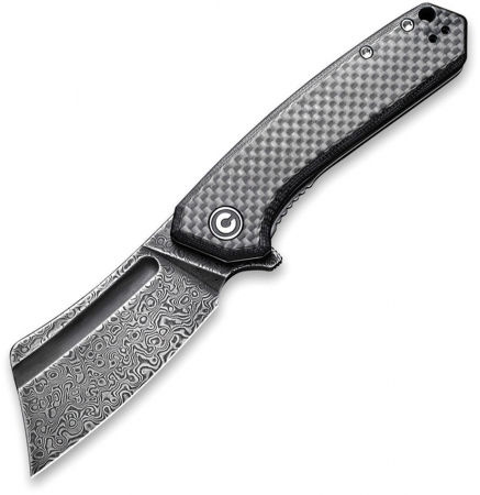 The CIVIVI Mini Bullmastiff is named for the dog breed. The Bullmastiff is a cross between an English Bulldog, and a Mastiff. Originally bred to defend estates from intruders, the Bullmastiff is a large, solid, disciplined dog. The CIVIVI Mini Bullmastiff, just like its namesake, is tough and dependable. It's made with a thick damascus blade and a carbon Fibre handle. The aggressive cleaver-style blade is weighted toward the tip, ensuring reliable opening with the flipper.