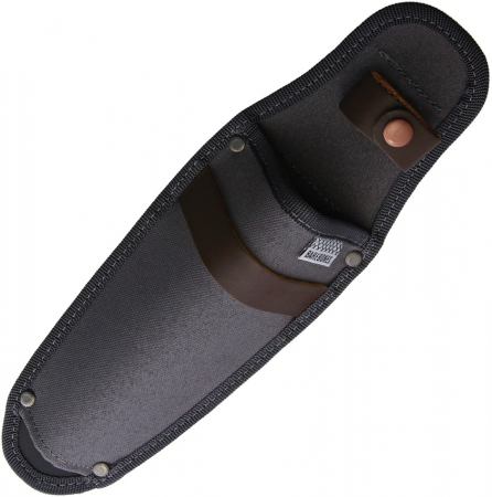 Dimensions: 11.5" x 3.5" x 2.5". Gray waxed canvas and brown leather construction. Belt clip. Copper finish snap closure. Fits Hori Hori Ultimate (BARE047). Not compatible with Hori Hori Classic. Bulk packed.