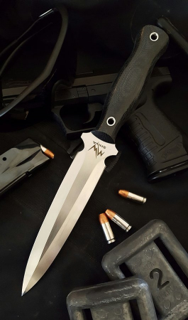 The Shiva is a beautiful, bilaterally symmetrical double edged dagger. Ostensibly designed for the same mission parameters as the legendary Fairbairn-Sykes Commando Knife, it has a number of significant design improvements which broaden its functional scope considerably. Most notable perhaps, is the handle, which flares out from a gentle lemon-drop to a knob-like pommel, which greatly facilitates a firm grip, and almost eliminates the problem of rolling in the palm. The geometry of the double hollow ground edges make them both striking in appearance and singularly functional. The Shiva gives you the best attributes of a stabbing pike and a straight razor.