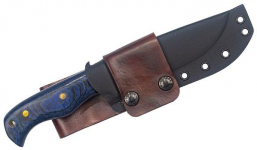 Straight up tactical and outdoorsy, the Blue Havoc Knife is ready for a trip out in the wilds or in combat. With a generous palm swell for maximum comfort, the Havoc series is ready to go for any duty. A 5.5" 1075 blade with an ambidextrous Kydex and leather sheath system highlights the features of this tough survival blade. The lip on the Kydex makes it easy to take out even when wearing gloves.