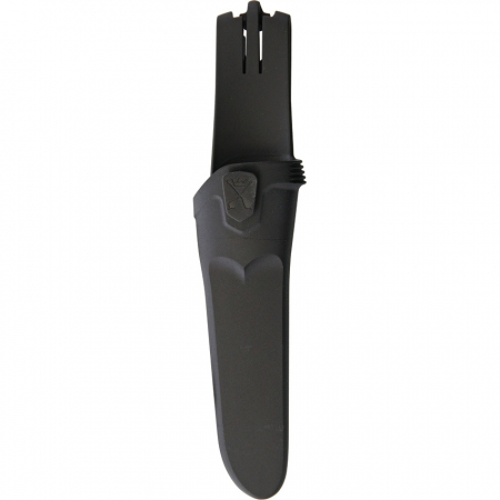 Overall: 8.125"; Blade: 3.5" l Carbon Steel l Standard Edge; Handle: Black l Polypropylene; Other Info: Black molded plastic belt sheath with drain hole. Bulk Packed.