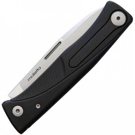 Designed by Molletta, it features a “no locks" mechaninsm and the SOLID® Knife handle, manufactured from a single aluminium block. The handle, light and easy to hold, is available either black, red, green or orange.