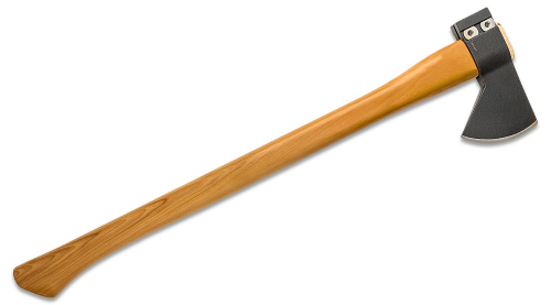 The Hudson Bay Camp Axe is faithful to historical examples stretching back over 100 years. Sized to be convenient to carry on every outdoor adventure, it's an essential tool you won't want to go into the woods without. Best of all, it features Cold Steel's ground-breaking clamp-like locking mechanism which is so ruggedly hard to "pull off" that it doubles the industry standard! Additionally, it's possible to change out a broken handle in less than two minutes. What's more, if you're caught in the wilderness, a field-expedient replacement handle can be improvised from nearly any piece of wood available.